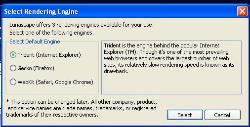 Lunascape is a new web browser that handles all three major web rendering engines — Firefox’s Gecko, Internet Explorer’s Trident and WebKit (which is used by Safari and Chrome). Lunascape Corp., a Tokyo-based web software company, offers the browser as a free download. Lunascape 5 Alpha is Windows-only and the first English version of the browser (a Japanese version dates back to 2001).