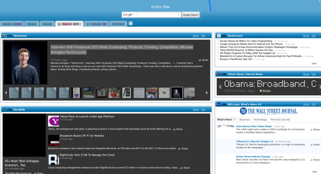 Maybe I’m just excited about this because I’m a former magazine guy, but I always thought Netvibes and most other start pages were way too ugly. The problem with start pages, visually, is that once you add more than a dozen or so feeds, all the boxes meld together and it becomes difficult to see at a glance what has changed. Simply changing the layout to emphasize more important feeds, and then tweaking the look of adjacent widget boxes, makes it much more pleasurable to read.