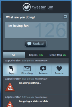 The first version of Appcelerator’s RIA platform, dubbed Titanium, is being released today for developers on Windows and Mac OS. Appcelerator is also releasing a few demo applications, such as a Twitter client named Tweetanium and a YouTube media player called Playtanium (both shown in the video below). I’ve tested the Tweetanium client and it does indeed operate like AIR clients such as Twhirl and Alert Thingy, albeit with far fewer features.