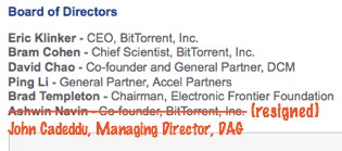 So why did the board vote for this extraordinary transaction? Two of the board members, Ping Li (Accel) and David Chao (DCM), are investors in the company and stood to gain financially from the rescission and recap. CEO Erik Klinker is an Accel man, having previously worked at Accel-funded Internap. That leaves founder Bram Cohen, founder Ashwin Navin and outside director Brad Templeton.