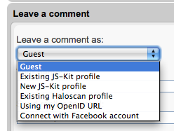 Other blogs are adopting Google’s Friend Connect (which lets people login with various email credentials, or even Twitter). JS-Kit is also working on adding Friend Connect, as well as MySpace ID as login options.
