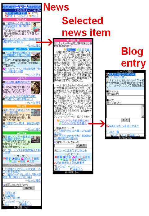 GREE began operations on the fixed Internet before Japanese users started to move over in droves to competitor Mixi, which currently boasts 15 million members. Today, the fixed Internet site is virtually abandoned, but GREE Mobile has 7 million registered users. And 99% of its 8 billion monthly page views are generated through cell phones.