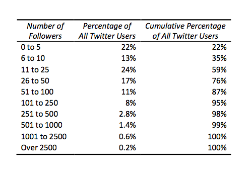 —Only 5 percent of all Twitter users have more than 250 followers.