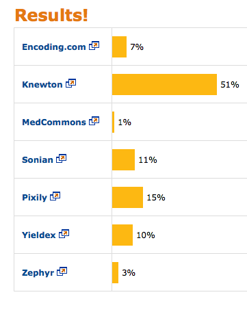 Based in New York City, Knewton raised $2.5 million last May from Accel Partners, First Round Capital, Reid Hoffman, Ron Conway, and other angels. The company was very much under the radar until it showed up as a finalist for the Amazon Web Services Start-Up Challenge last month (see video below). The company is built entirely on Amazon’s cloud computing services (EC2 for computation, S3 for storing video tutorials, and Mechanical Turk for fine-tuning its test questions). And currently it is leading in the voting for the Startup Challenge, with 51 percent of all votes cast. (That kind of online voting can be easily gamed, of course). Actually, the Startup Challenge already has its winner: Yieldex. Knewton did win the popular vote, though.