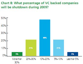 - 74% predict that at least 10% of venture backed startups will be shutdown.