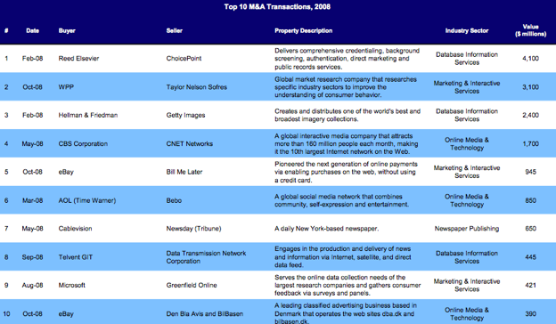 - Reed Elsevier buys Choicepoint ($4.1 billion)