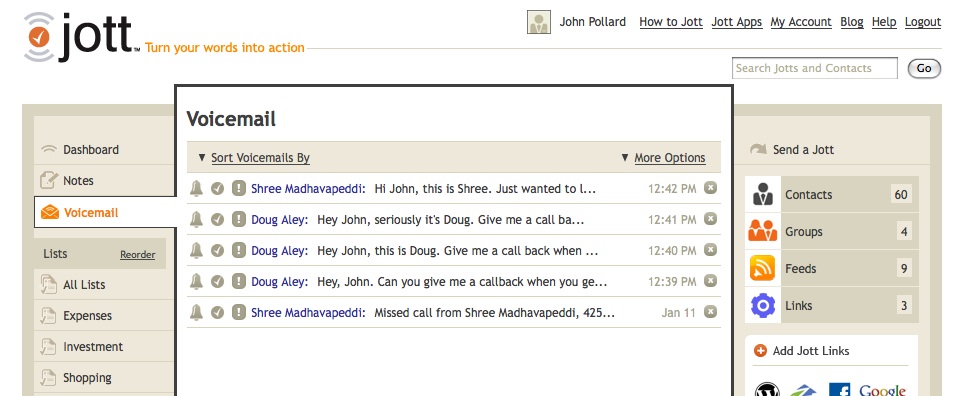 Jott is also preparing to roll out a new service, voicemail-to-text. Like competitors Spinvox, PhoneTag, GotVoice and others, voicemails will be converted into text messages and sent to you within a couple of minutes. The application is priced at the same level as competitors, $10/month for up to 40 messages. The product launches today.
