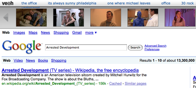 Aside from occasional bizarre matches (which are to be expected as Veoh builds up its database), my biggest complaint is the fact that the Veoh Compass appears only after the page you’re visiting has finished loading (so your Google search will finish, and only then will the Veoh ribbon pop in, shifting everything down a few centimeters). This might sound like a trivial nitpick, but it gets annoying.