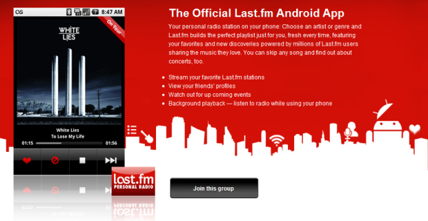 Music recommendation engine / social network Last.fm has launched an official, feature-rich application for the Android platform that enables users to stream radio stations (including personalized streaming radio), consult up-to-date concert information and also offers the ability to track users’ listening habits based on their Last.fm profile.
