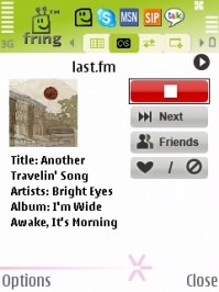 Fring users (also referred to as fringsters) are now able to fire up streamed music radio channels, including their own Last.fm library, tag favourites, ban disliked tracks, view album artwork and basically take their Last.fm music account mobile. In addition to getting those features into the client, fringsters can also opt to view in real-time what their contacts are currently listening to, with the help of a friends list embedded into the Last.fm add-on.