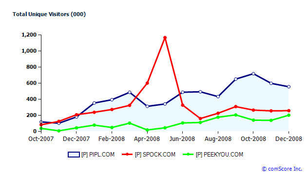 Going by ComScore’s December numbers, Pipl is leading in the US with 557K unique users to Spock’s 260K, but is trailing internationally with 1.35M uniques to Spock’s 2.38M. How has Pipl pulled this off? Matthew Hertz, the company CEO, tells me it’s mostly word-of-mouth. It’s a simple answer but it rings true. Just take it out for a spin and you’ll see why—it’s just good. In fact it’s so good it’ll probably scare some people’s pants off when they see what information it is able to—legally—drudge up.