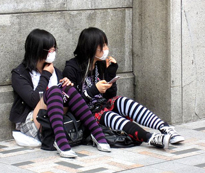 While this post is actually just an excuse to show you this great picture – high stockings, cellphones, and vaguely menacing medical gear are so underrated – it’s now been proven that facemasks can and do prevent the spread of flu. Unfortunately, you have to wear them almost constantly, which is probably not so much fun.