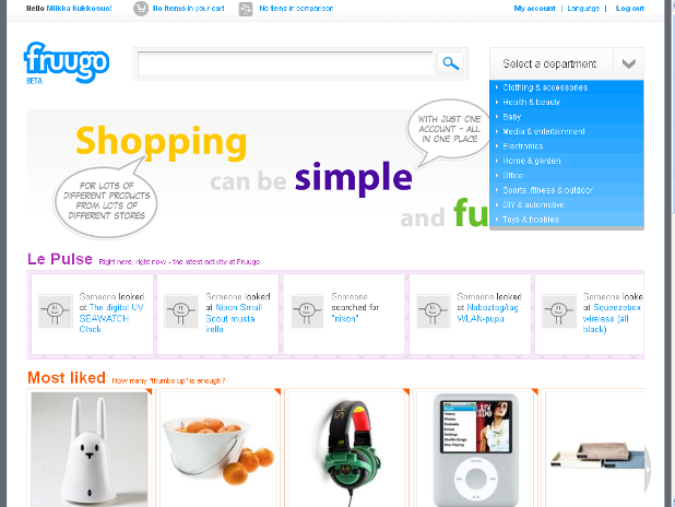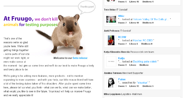 Fortunately, local tech blog ArcticStartup is following the developments closely and has announced this morning that Fruugo is now in closed beta mode. One of the bloggers was invited to their offices this week and was shown a preview of the service, which the company seems to be having trouble with labelling (“Janne Waltonen, VP Marketing & Communication, mentioned that they have not really figured out yet what to call Fruugo”).