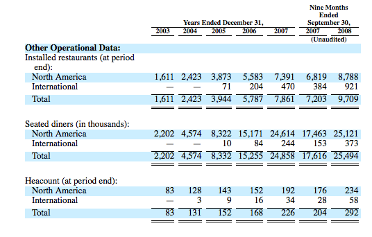 The company lost 149,000 in net income, but turned an operating profit of 261,000. That is a rather slim margin, however, it appears that the company was spending as much as it could to grow and take market share, especially internationally where it is just getting started. Operating income in North America for teh period was $6.8 million, whereas the company took an operating loss of $6.5 million internationally. Those are startup costs, since it is just getting its foot in the door at restaurants outside the U.S. and Canada.