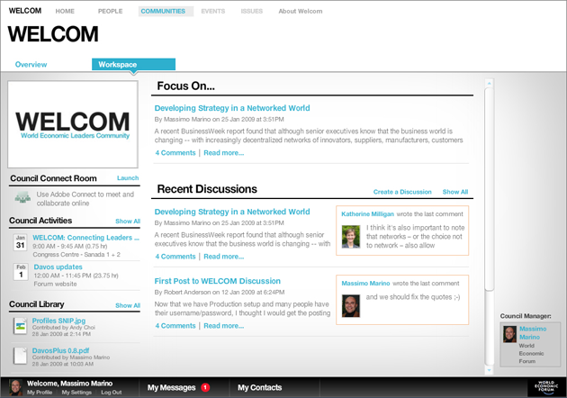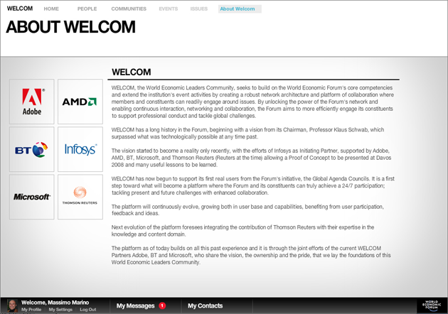 The World Economic Forum in Davos is finally trying to make its mark in social media at this year’s conference. The organization is unveiling the beta version of its exclusive Facebook-style social networking site, called WELCOM, reserved for high-profile attendees of the World Economic Forum like Mark Zuckerberg, Vladimir Putin and Kofi Annan.