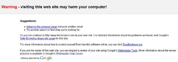 Update 3: Marissa Mayer has now explained the error on the Official Google Blog. She puts it down to human error after a ‘/’ was mistakenly put in an update sent from the non-profit StopBadware.org to Google (the non-profit also posted more details). The result was every URL in Google’s database being classified as “malware” until the stray ‘/’ was removed.