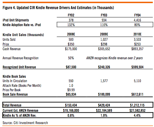 When the Kindle sold out during the holidays, I guessed that Amazon would end the year selling 500,000 of its electronic books. All I did was roughly double the 240,000 that had sold through the middle of the summer. But now Citi analyst Mark Mahaney has come to the same conclusion, using better data.