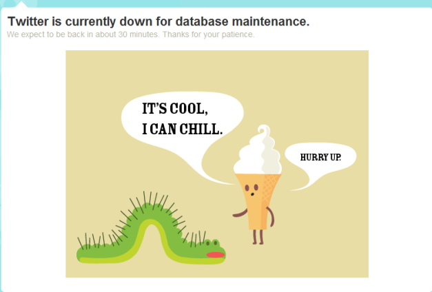 Update: half an hour of downtime now, Twitter Status is silent. I’m getting my Fail Whale T-shirt.