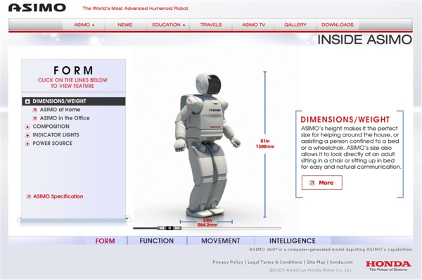 Honda’s ASIMO has conducted an orchestra and even served cocktails. Now Honda has added a 360° look at the technology in ASIMO that lets him do all of that. You can see it here. It’s not just a spinning ASIMO, there’s a lot of interesting information on how it gets around, avoids obstacles, and that sort of thing.