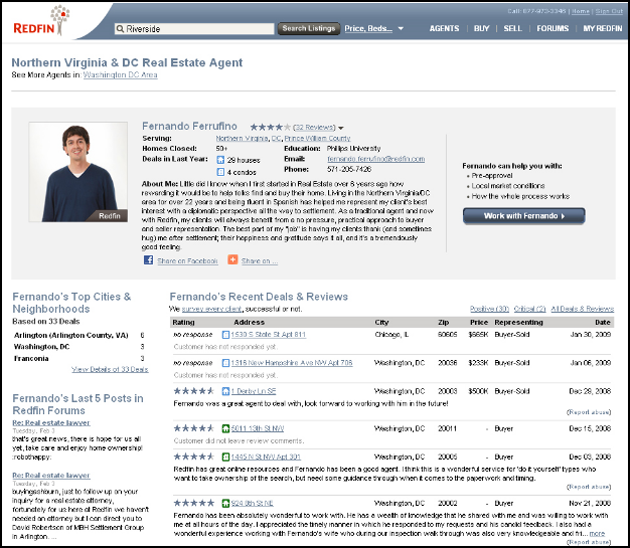 Here’s a look at a sample review of a in-house Redfin real estate agent (not a partner agent):