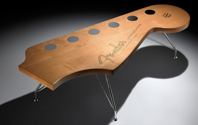 If you’re a big shred head, why not totally show off your rockstar moves with this odd, $750 Fender-headstock coffee table complete with machineheads and enough power to tear up the Lindberg Air Force Base in Seattle and then some.