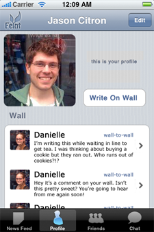 The OpenFeint Platform allows developers to integrate features including user profiles, Facebook-like ‘walls’, and chat rooms (which can either be game-specific or globally shared across all games). OpenFeint founders Jason Citron and Danielle Cassley say that the platform will save developers around two months of coding and only takes around two hours to integrate with its default UI (though developers will be free to customize the system to suit their games). And all chats will be hosted on the OpenFeint servers, so developers won’t have to worry about managing resources. Final pricing plans have not yet been determined, but Citron and Cassley say that it will remain free throughout the beta and will also be free for small-time developers, though they will have to sign on to a paid plan if their game becomes popular.