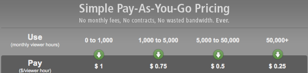 So a live stream watched by only 30 people for a half hour would cost $15, but a stream watched by 30,000 people for a half hour would cost $7,500. I am not sure how much a comparable content delivery network like Akamai would charge, but Ustream CEO John Ham says they are aiming for a comparable price. Watershed’s advantage being that customers only need to pay for what they actually use.