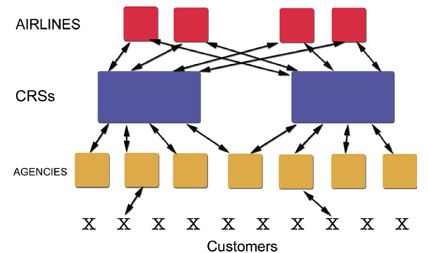 Neither Sabre nor Apollo had a monopoly of the market for reservations services, but together each had a parallel monopoly on the share of the market that they served through their agency customers. This should be clear from the figure below.