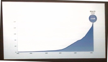 1:14 PM: FB now has 175m users sharing hundreds of millions of pieces of data a day. more than a billion photos a month are being uploaded