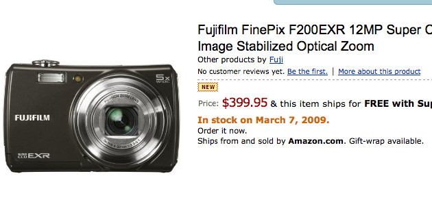 Booyah! Amazon just updated their Fujiflim F200EXR page with an availability date. The most promising and probably the best point and shoot available will start shipping March 7th. We can’t wait to see what that EXR sensor can do.