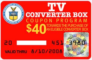 HUZZAH! Thanks to Obama and his buddies in Congress, consumers will soon be able to redeem a DTV coupon for $40 off of a DTV box. The Economic Stimulus packaged funded the program with $650 million which should help the millions waiting for these coupons.