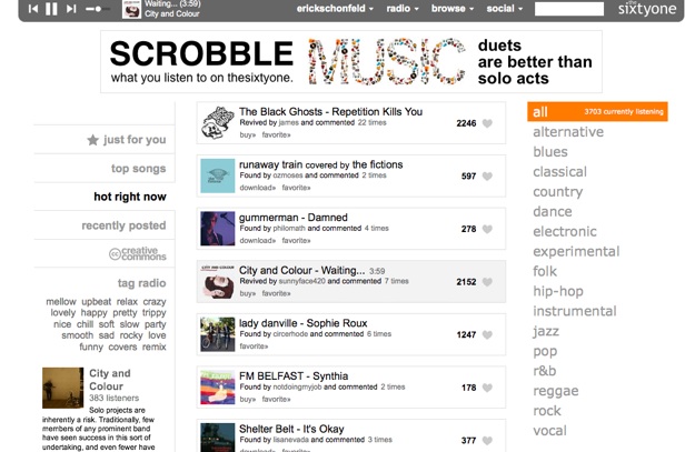 Thesixtyone is a Y Combinator startup that launched a year ago. It is now attracting about 100,000 unique visitors per month and 10 million pageviews, say the founders. That suggests a high level of engagement. The average session is 40 minutes, and registered users typically spend 2 hours a day on the site (although much of that is no doubt is simply listening to it with a browser tab open while doing other things). Still, Y Combinator’s Paul Graham says the service is “ramen profitable” from ads and Amazon affiliate links.