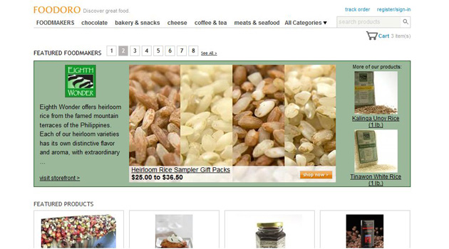 Foodoro, a new Y Combinator startup launching today, is an online marketplace for specialty artisanal foods. The site allows foodies to ship items like sesame nut spice chocolate and Mountain Jasmine Green Pearl Tea, to themselves or friends and family. The site offers a variety of hard-to-find food items from 54 vendors across the country, ranging from California cheese makers to Nebraskan buffalo farms to rice grown in the Philippines.