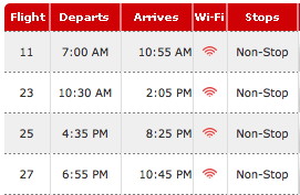 Just a quick update for the transcon flying tech folk. Virgin America updated their online booking system to show you which flights are wired for Wi-Fi so, you know what you’re getting yourself into before you board the plane. Also, starting April 5th, the following routes will all be wired for Wi-Fi: Boston to LA, Boston to San Francisco and Dulles to Los Angeles.
