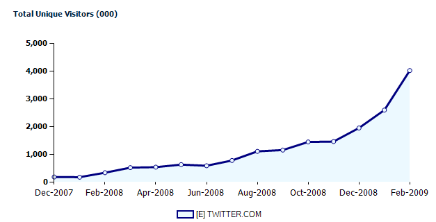 These numbers are only for visitors to Twitter.com, and they do not capture usage on desktop or mobile clients. And the apps just keep on coming. For instance, Twitdom now counts 529 Twitter apps. But the site visitor numbers are indicative of the steep growth ramp Twitter is enjoying right now. It is still early days. Can its growth keep accelerating or is it unsustainable?