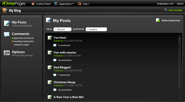 The new blogging system isn’t particularly unique, but it has been a oft-requested feature by many of the site’s users. The system features most standard features you’d find on platforms like WordPress, including tagging, multiple author support, and threaded commenting. The system plugs into the service’s other applications, so you can import photos from SnapPages’ rich photo application directly into your blog posts. And for the most part, it’s easy to use, especially because there is a minimal amount of setup involved.