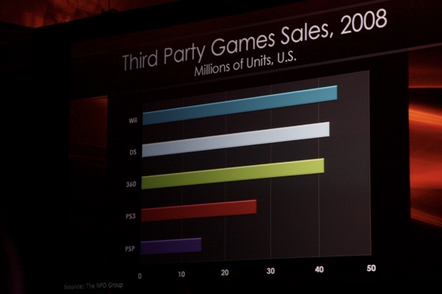 Wii sold more third party games sales in 2008 than everyone else. Ironically, the Wii Balance Board’s Global LTD Install Base is just shy of 15 million and it’s nipping at the PS3’s heels. You read that correctly, kids. The Wii Balance Board’s install base is only a few million behind that of the PS3.