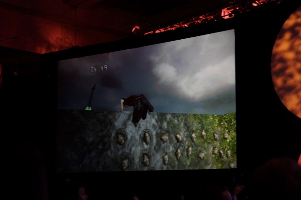 A new Wii title was showcased today and it’s got the weirdest gameplay of anything we’ve seen. Using the balance board and Wiimote, you’re climbing up a rock wall and when you get to the top your reward is a guitar that your avatar starts to rock out on. It’s called Rock and Roll Climber. Please be patient while the video renders.