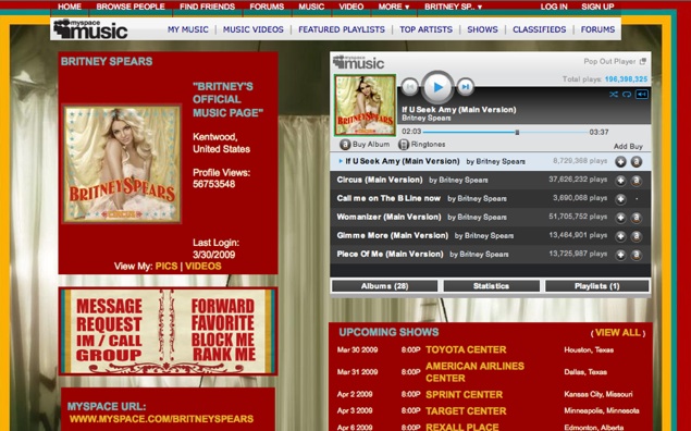 All of these fake profiles remind me of Julia Angwin’s recent piece in The Wall Street Journal, “Putting Your Best Faces Forward”. She notes that MySpace grew out of the ‘Fakester Revolution’ from the Friendster that denied anonymity. MySpace became the Promised Land for those who wanted to stay anonymous—it was so by design (pun intended). MySpace was about collecting friends – users like Forbidden and Tila Tequila amassed hundreds of thousands of them