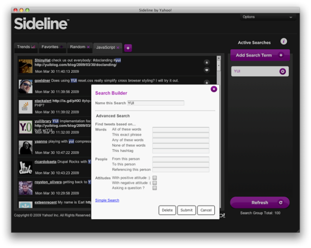 The desktop application comes from Yahoo’s User Interface (YUI) group, who explained in detail what inspired them to build it and how they did it. Sideline was developed with the Yahoo! User Interface Library (YUI) and HTML/JS/CSS. The code is open source under the terms of the BSD license and hosted on GitHub.