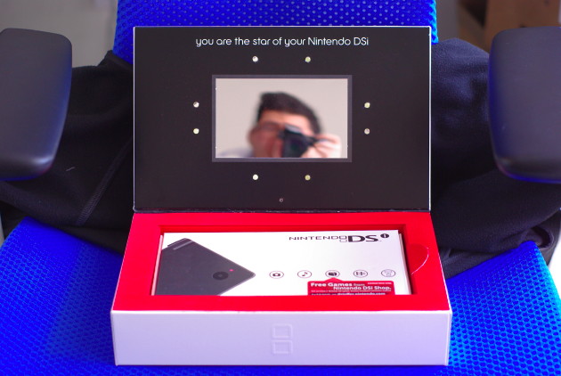 We’ll have our unboxing of the DSi in just a bit. I was really hoping for that snazzy blue DSi to match my Lamb Chop mouse pad, but no such luck. And I didn’t get a cake either.