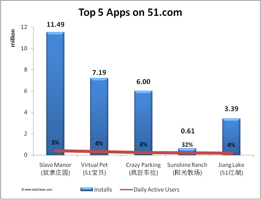 Additionally, ad sales are also strictly controlled by the social networks themselves even though 51.com set a threshold of a $35k fee to be paid for app developers to operate their own ad revenue -based applications (which until now no developer was willing to pay).