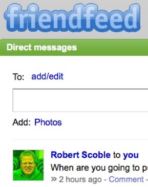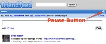 As real time feeds come into your stream, it pushes what you are reading further down, which also can be a little annoying. FriendFeed has a solution for this: a pause button where your can turn the real-time updates off, and when off, the icon will tell you how many real-time updates are waiting to be added to your stream. The new interface also allows you to send direct messages and photos to your friends and lets you post these messages to Twitter.
