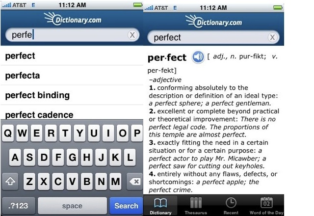 Dictionary.com, part of the Ask.com network, has launched a free iPhone app that delivers lets you look up definitions and synonyms from Dictionary.com and Thesaurus.com, reaching into a database of more than 275,000 definitions and 80,000 synonyms. The app also features audio pronunciations, similarly spelled words and Word of the Day.