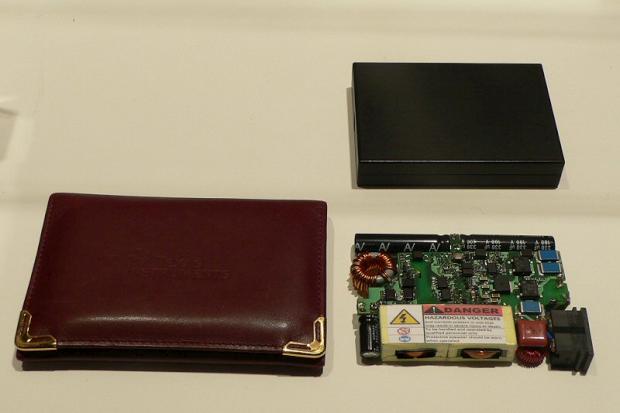 Wanna know something about laptops? No matter how small and portable you make ’em, the AC adapter’s always going to be the size of a ham sandwich. Well that gravy train is about to crash into a brick wall of ingenuity thanks to Texas Instruments. The company has apparently developed a 90-watt AC adapter that measures 85x60x11 millimeters or, as the above photo shows, about the size of a wallet.