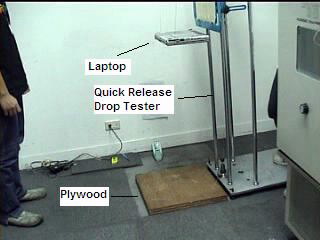 Unless the tester shown in this pic which was included in the testing documentation is a ‘little person,’ that test is a hell of a lot higher than 29-inches. I think it needs to be pointed out too that if the plywood in the same pic isn’t secured down to the floor, the testing is skewed anyway and doesn’t provide a true test of the ruggedness of the notebook. When the notebook is dropped onto that testing surface, the impact will be absorbed by the bounce back of the plywood from the downward force of the 6lb-ish notebook. My hardwood floor doesn’t bounce. Just saying…