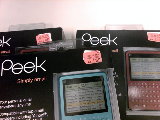 I don’t know if all the color options, or stores, are running the same pricing, but at least the red and blue models are $25 at Flint, MI target. The website still lists the email devices at $50, but who knows, maybe it will drop on there shortly. $25 is closer to the price point that the Peek should be sold at considering th $20 monthly service charge that is required.