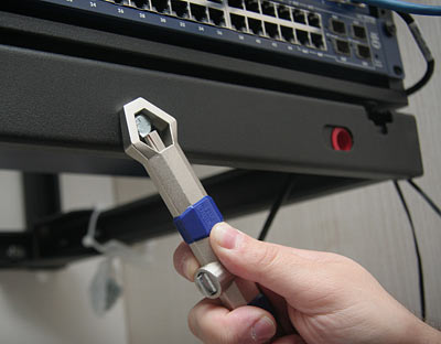 Essentially the adjustable part of the wrench is restricted in its movement by a fluid inside the handle, which has nowhere to go once you twist the little stopper. Ingenious, but I actually like having lots of wrenches around. Makes me feel like a real man. Even though the high-tech view there makes it look like a sex toy from Tron 2.