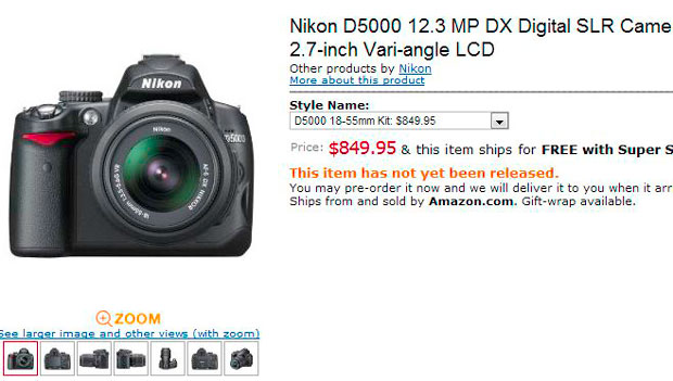 If you’re the type that simply must have the latest gadget the day it comes our – you know who you are – then head on over to Amazon to pre-order the articulating screen-equipped and HD video shooting Nikon D5000. Only the kit is available for purchase, but we hear the 18-55mm F.3.5-5.6G VR lens isn’t that bad anyway. $849.