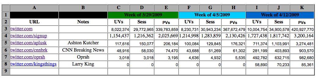 Wow. And remember, this data is only for Twitter’s website, it doesn’t include any of the usage from third-party sites/services (thanks, Max). Find the full web traffic chart below.